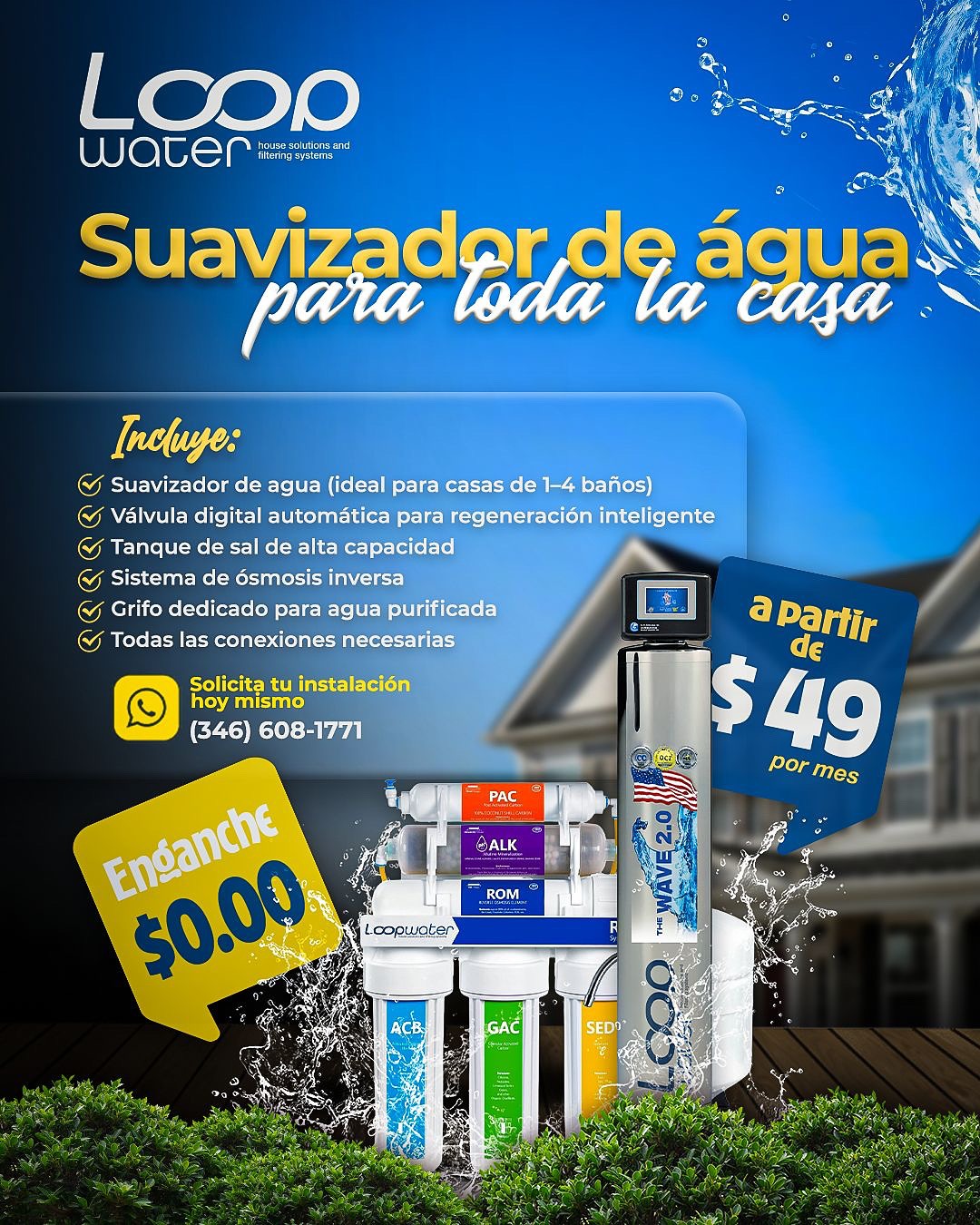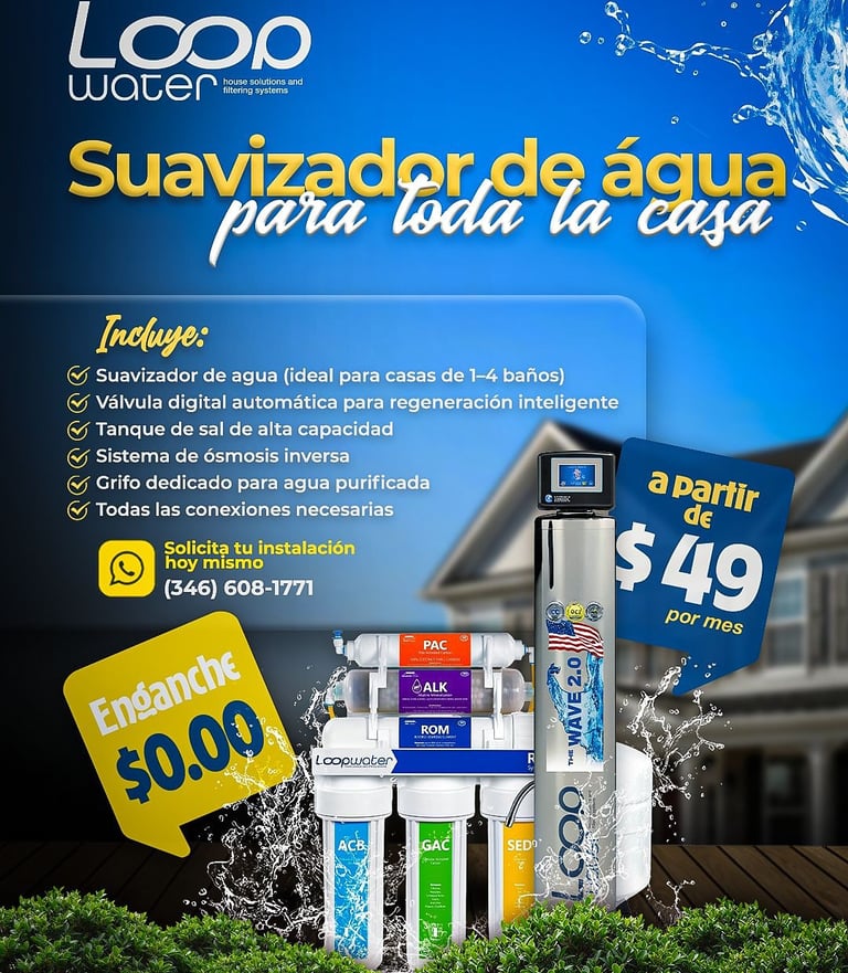 Transforma la calidad del agua de tu casa con nuestro sistema Loopwater, diseñado para ofrecerte agua más limpia, suave y segura desde cada grifo. Incluye: